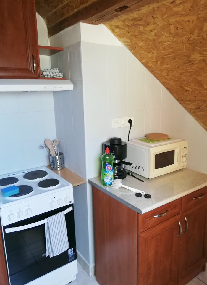A szobák 2, 3 és 4 ágyasok. A szobákban hűtőszekrény, televízió, WiFi, ruhásszekrények és éjjeli szekrények szolgálják a vendégek kényelmét. Minden szinthez felszerelt konyha-étkező tartozik, valamint fürdőszoba zuhanyzókkal és különálló WC helyiségekkel. A szinteket belső lépcsőház köti össze.